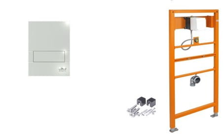 W komplecie z ramką montażową, płytą przyciskową, zaworem ze sterowaniem manualnym z wbudowanym filtrem.