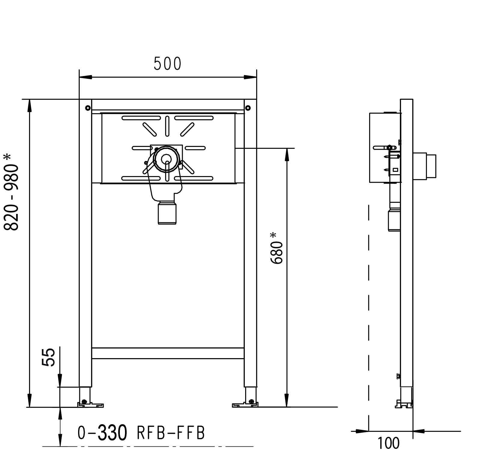 Wysokość montażowa 820 mm / 980 mm.